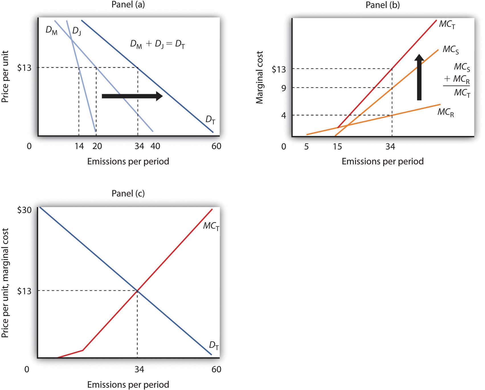 As we saw in Figure 18.1 "Determining the Efficient Level of Pollution", the marginal benefit curves of individual polluters are added horizontally to obtain a market demand curve for pollution. This curve measures the additional benefit to society of each additional unit of pollution.