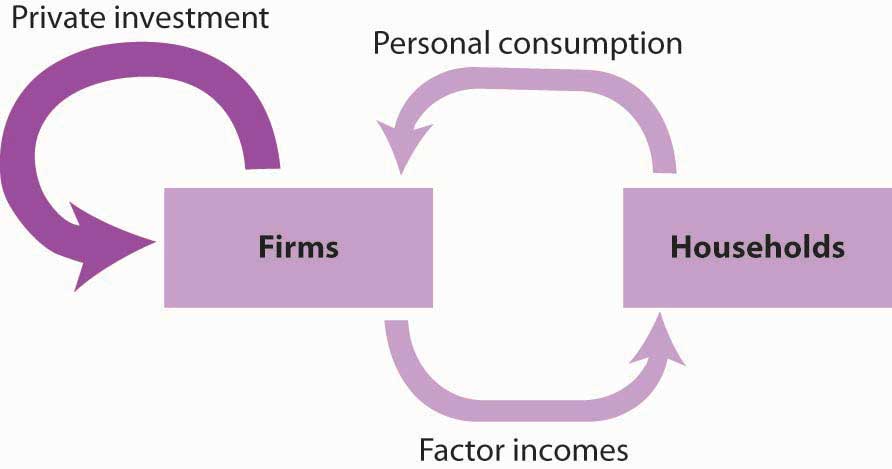 Private investment constitutes a demand placed on firms by other firms. It also generates factor incomes for households. To simplify the diagram, only the spending flows are shown—the corresponding flows of goods and services have been omitted.
