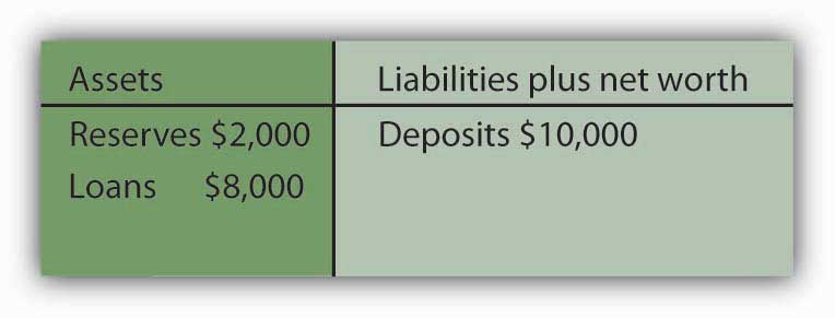 Acme Bank is loaned up, since $2,000/$10,000 = 0.2, which is the required reserve ratio. Acme’s balance sheet is: