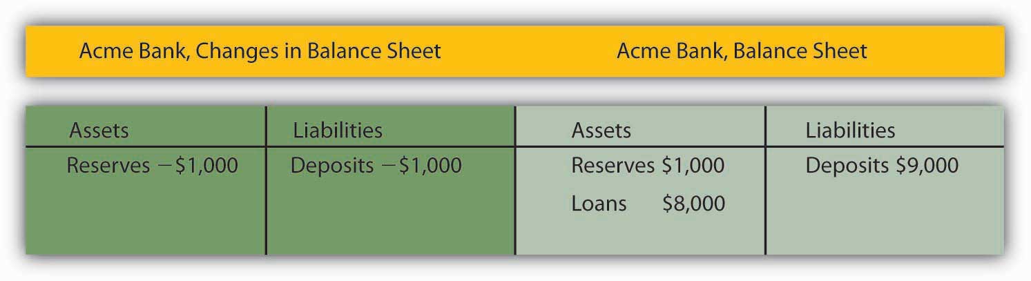 Acme Bank’s balance sheet after losing $1,000 in deposits: