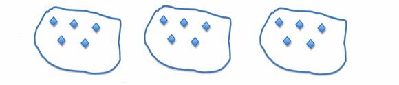 Multiplication is a way of writing repeated addition. When you read the problem 3 • 5 you could think of this as 3 groups of 5 things—3 plates with 5 cookies on each plate; 3 baskets, each with 5 oranges in it; or 3 piles with 5 coins in each pile. We could show this as a picture:
