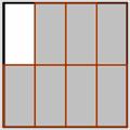 A whole can be divided into parts of equal size. In the example below, a rectangle has been divided into eight equal squares. Four of these eight squares are shaded.