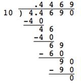 | Move the decimal point one place to the left in the dividend; this is the quotient. |
