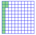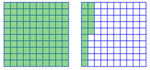 | The grid is divided into 100 smaller squares, with 10 squares in each row. |