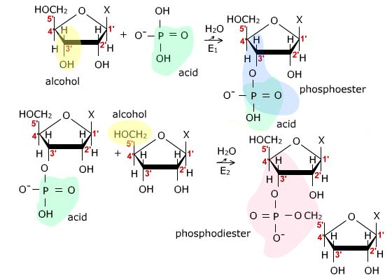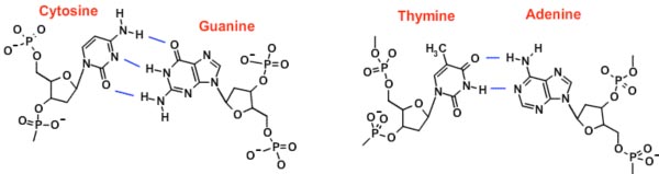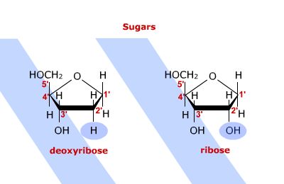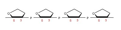 As you can see in the table, oxygen, nitrogen, and sulfur are electronegative atoms and represent the major electronegative atoms in biological molecules. Phosphorous, an important component in nucleic acids (e.g. DNA) is also electronegative. Water is a good example of how the very electronegative atom of oxygen influences the electrons shared with hydrogen. Oxygen has six valence electrons; two sets of paired electrons and two sets of single bonding electrons. The shared electron pair of each oxygen-hydrogen covalent bond, illustrated below, spends more time associated with the oxygen atom than the hydrogen atom. This results in the oxygen being partially negative, and the hydrogen partially positive, as indicated in the figure below by δ- and δ+. These are then described as a polar covalent bonds. The presence of polar covalent bonds in water and in other molecules containing electronegative atoms puts these molecules in a family of molecules referred to as being polar. We will return to polar bonds in water and their consequences in the "Importance of Water" section. Oxygen is not the only electronegative element that forms polar bonds, as long as the electronegativities of the two atoms differ, the bond will have some degree of polar character. For example, the P-O bond in DNA is polar, with the phosphorous having a partial positive charge since it is less electronegative than oxygen.