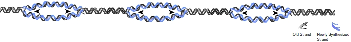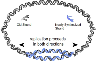 | DNA Replication The enzymatic and structural features of DNA replication in all organisms are very similar. These animations illustrate the processes involved in the replication of the Eschericia coli chromosome. The names of the DNA sites, enzymes, and other protein factors differ in viruses and in eukaryotic organisms, however, the basic features have been highly conserved in evolution. In E. coli, DNA replication begins at a single site on the chromosome called "OriC". Refer to page. |