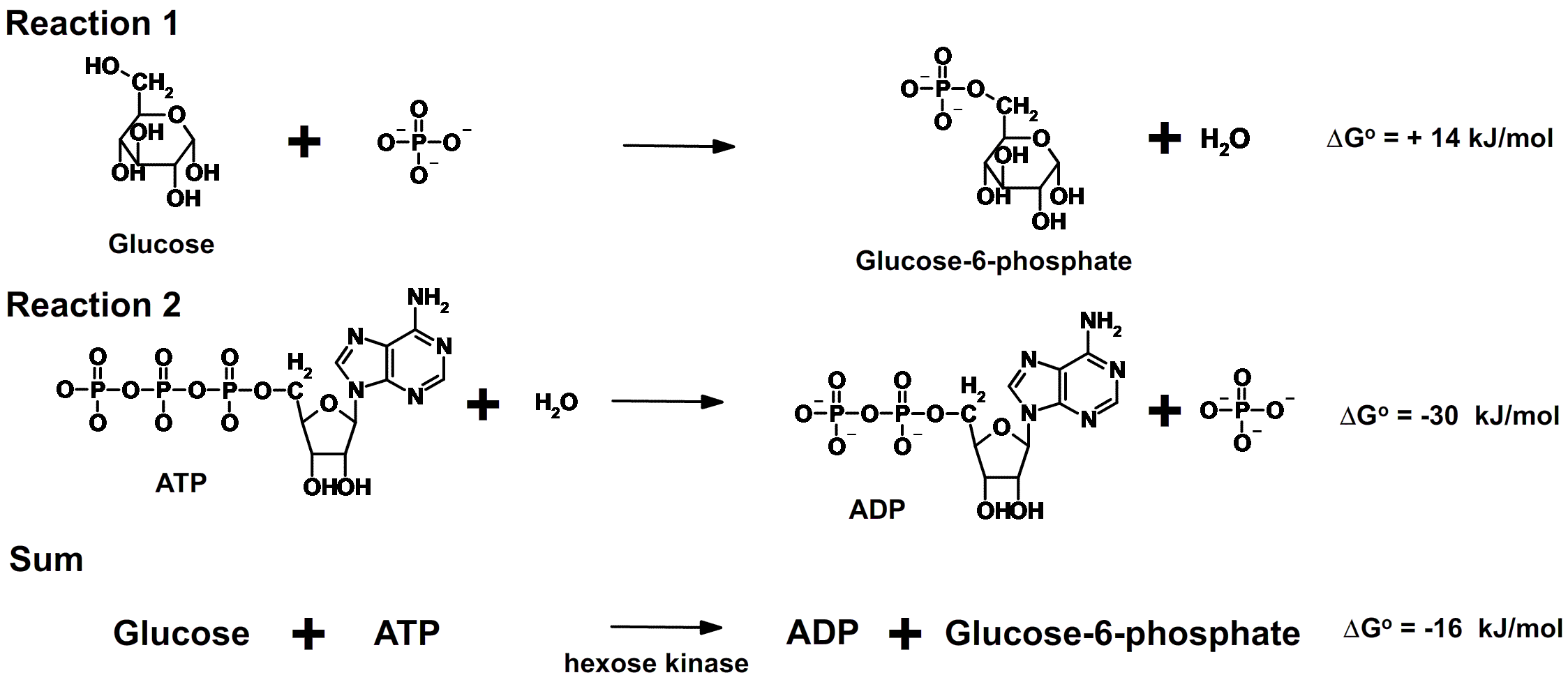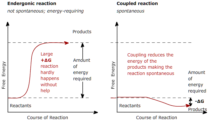 | ATP Synthesis The synthesis of ATP utilizing the proton gradient as a source of energy is an example of direct coupling. The energy released as the protons flow through the enzyme cause a conformational change in the protein that causes the formation of ATP from bound ADP and inorganic phosphate. Refer to page. |