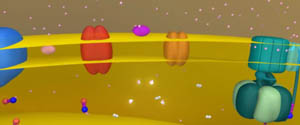 | Intercellular Transport: Gap Junctions This simulation demonstrates how transmembrane protein structures from adjacent cells line up to form Gap Junctions, channels between cells that act as size exclusion transporters. While water molecules are small enough to move through the membranes, the Gap Junctions facilitate that movement and the movement of molecules up to 1500 daltons (approximately a 15 amino acid peptide) but not larger molecules. Refer to page. |