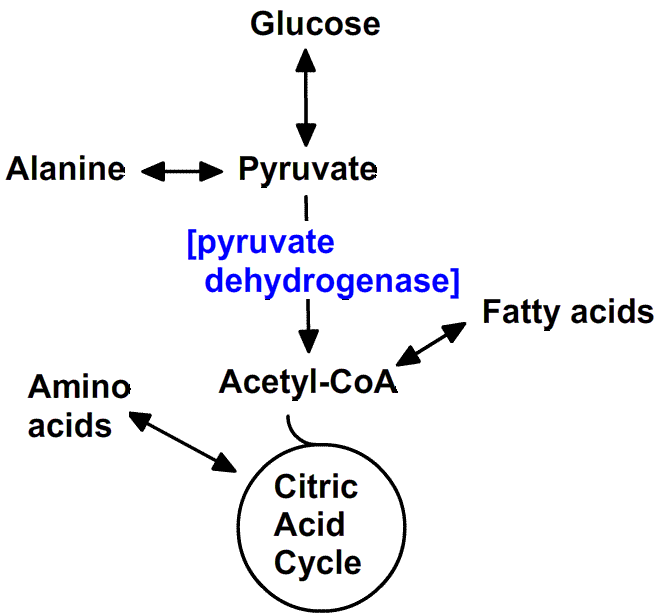 Although pyruvate dehydrogenase is well regulated, it is clear by observation of the human population that the flow of carbon from pyruvate to acetyl-CoA to fatty acids still occurs.