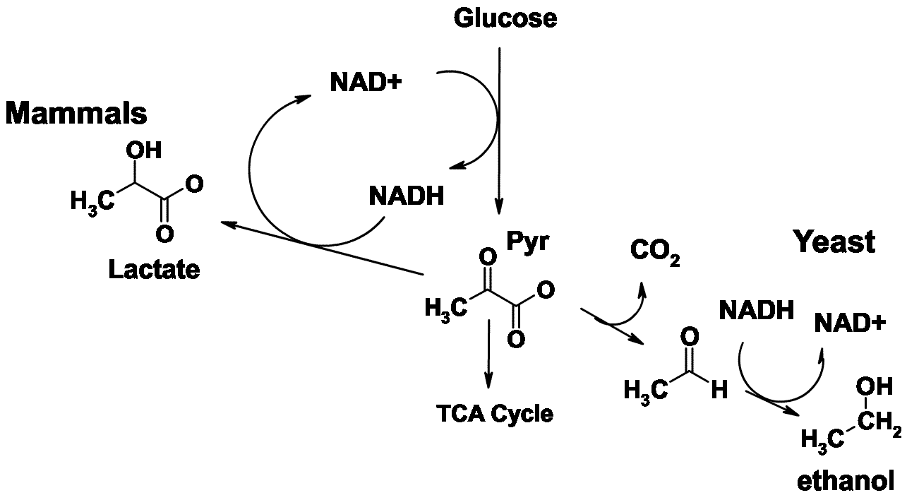 the PFK step. Lactose, the major sugar in milk, provides one glucose