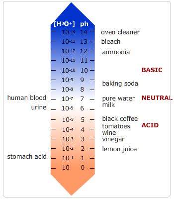 Since the hydrogen ion concentations are usually much less than one, and can vary over many orders of magnitude, a different scale is used for the hydrogen ion concentration, the pH scale. The pH is the -log of the proton concentration: